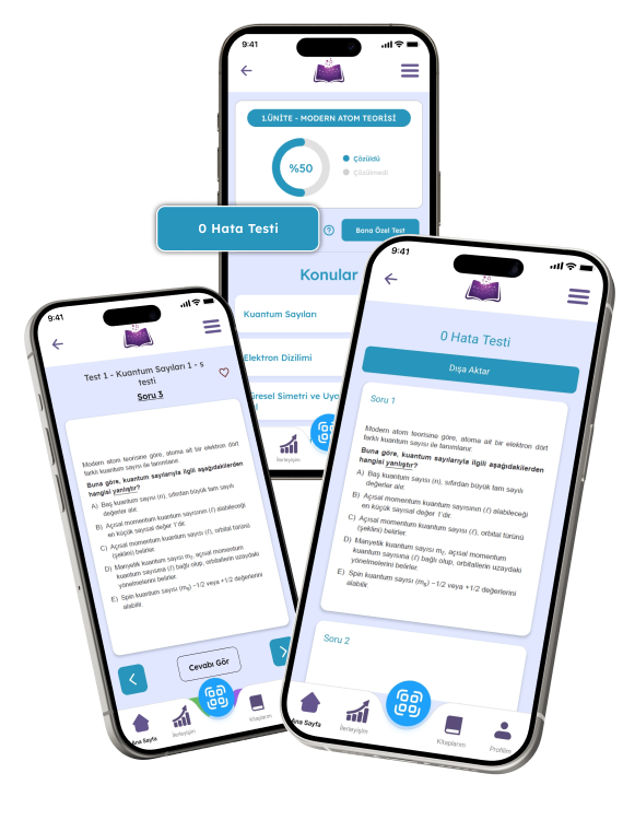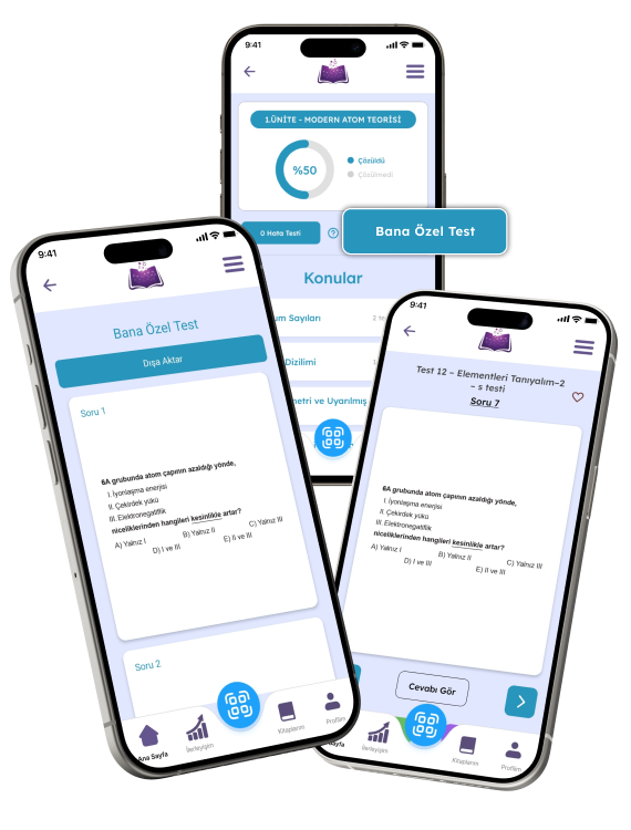 Kitap üzerinde bulunan QR kodları telefonunun kamerasıyla veya uygulama içindeki QR okuma özelliğiyle taratabilirsin. Kod okunduğunda ilgili kitap, test veya çözüm ekranı otomatik olarak açılır.